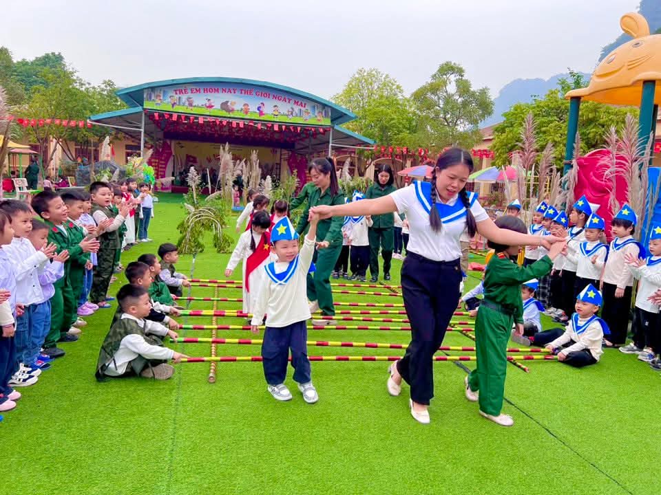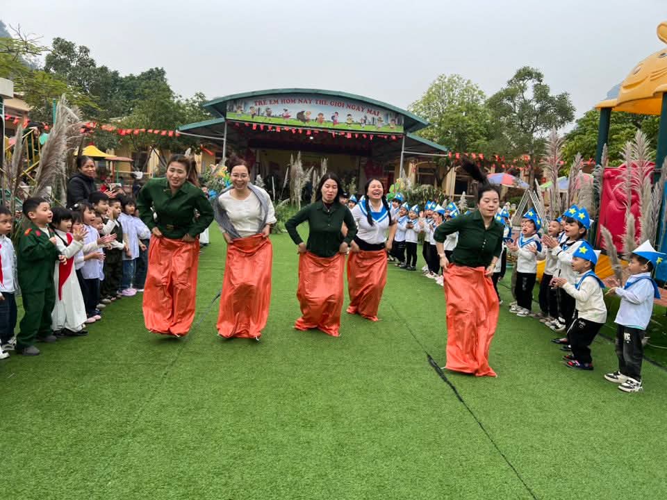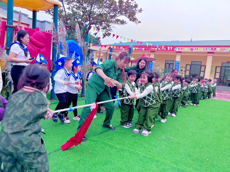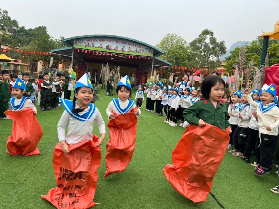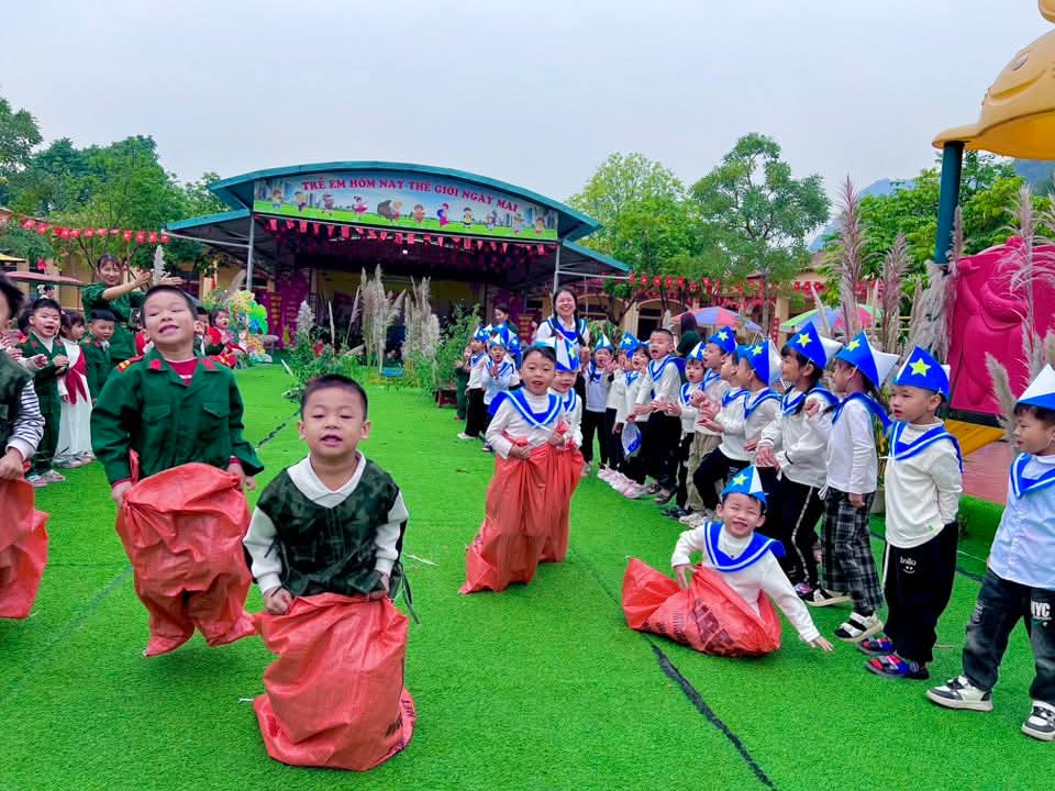 👉 Các con được tham gia nhiều hoạt động sôi nổi như nhảy sạp, kéo co, nhảy bao bố… Giúp các con rèn luyện sức khỏe, tinh thần đoàn kết và ý chí kiên cường vượt khó.✨
