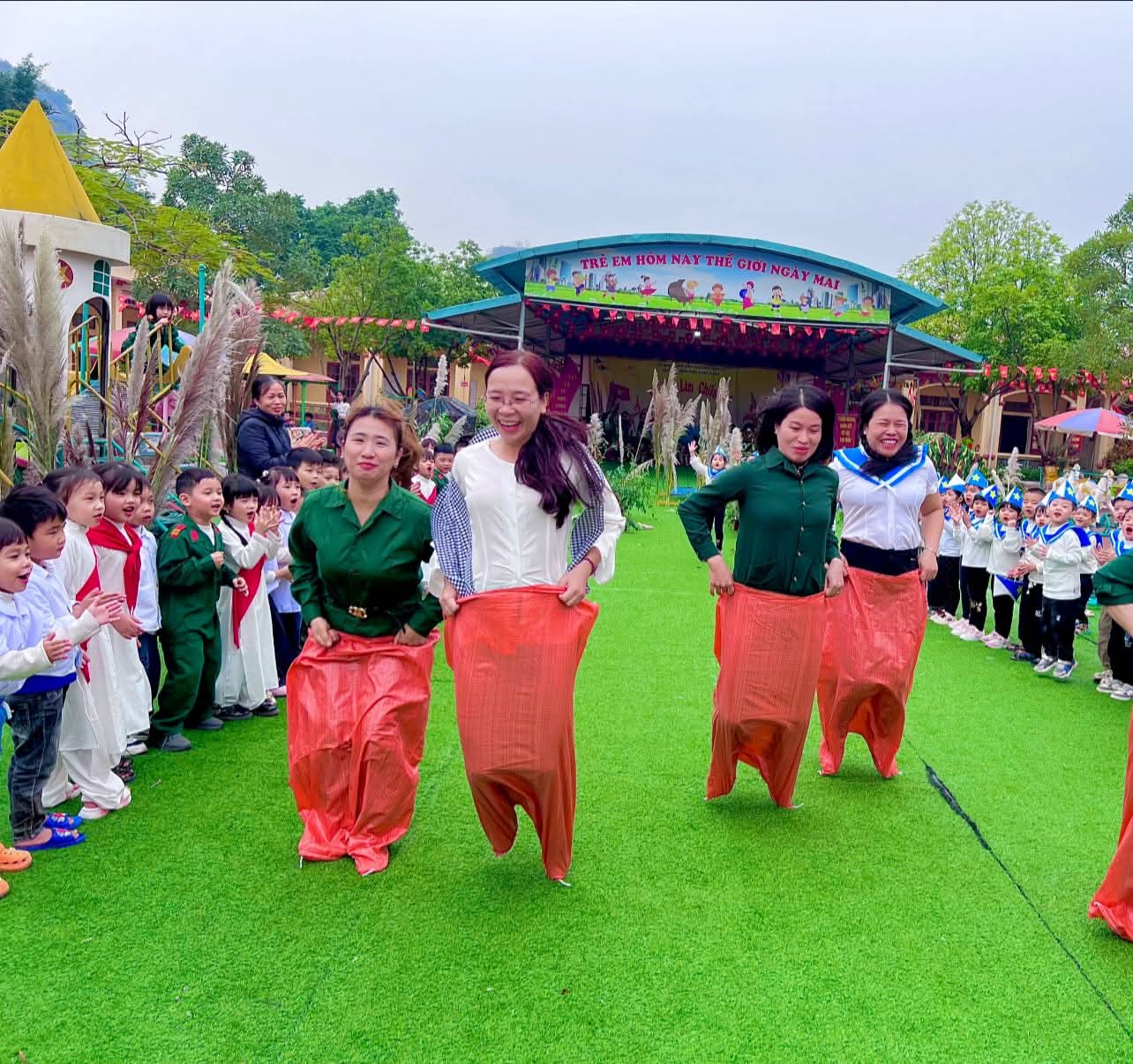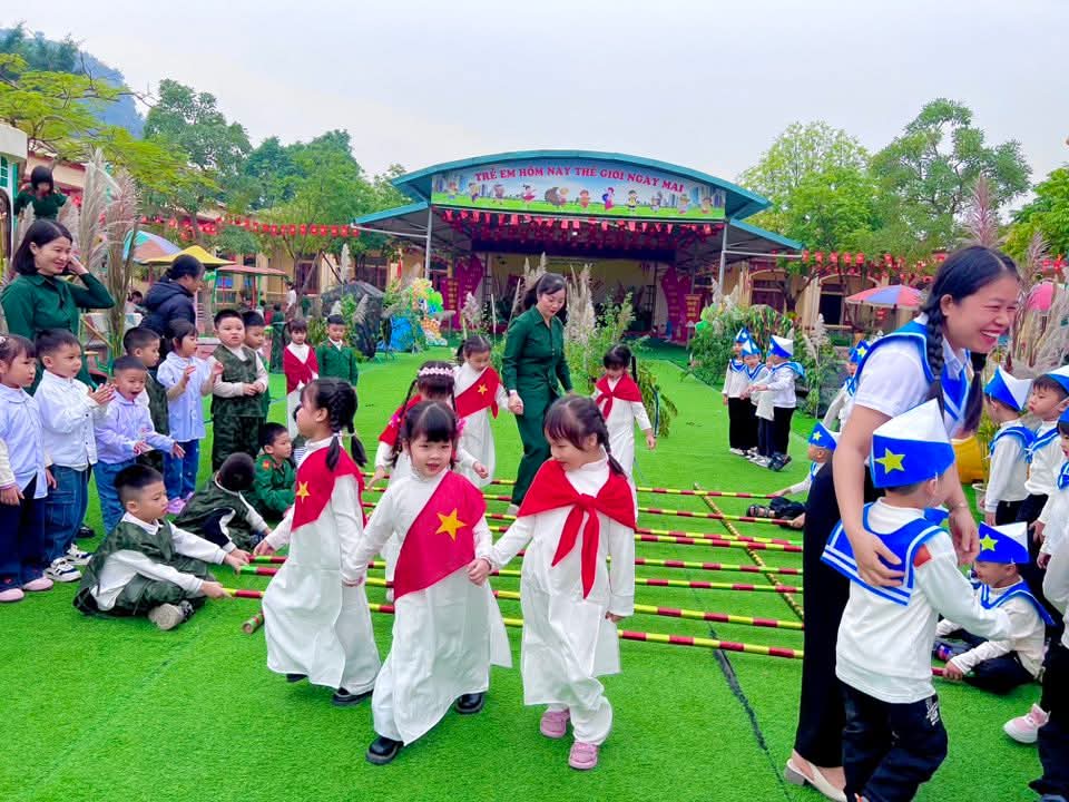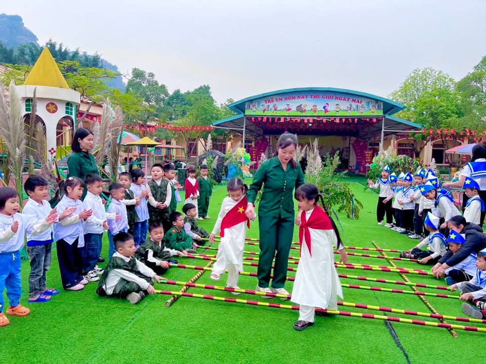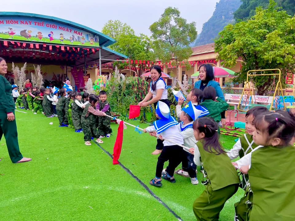 👉 Các con được tham gia nhiều hoạt động sôi nổi như nhảy sạp, kéo co, nhảy bao bố… Giúp các con rèn luyện sức khỏe, tinh thần đoàn kết và ý chí kiên cường vượt khó.✨