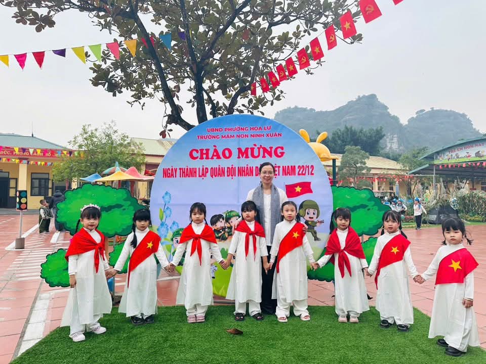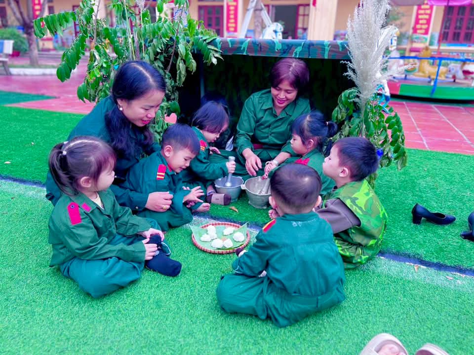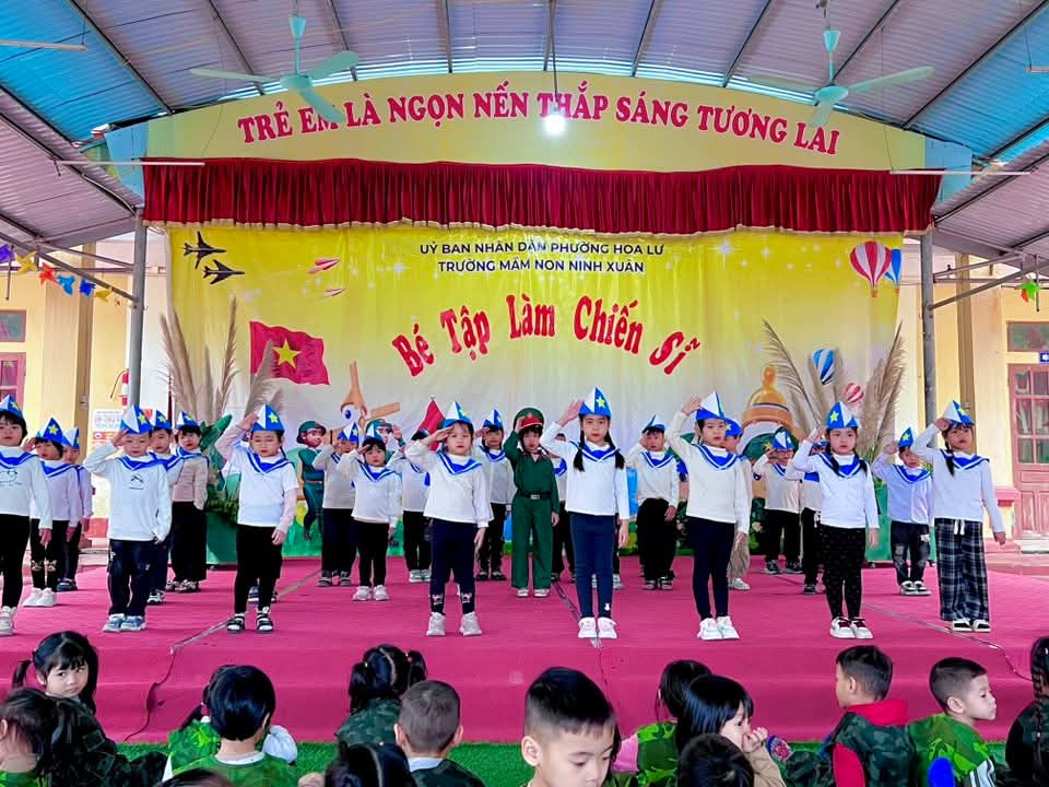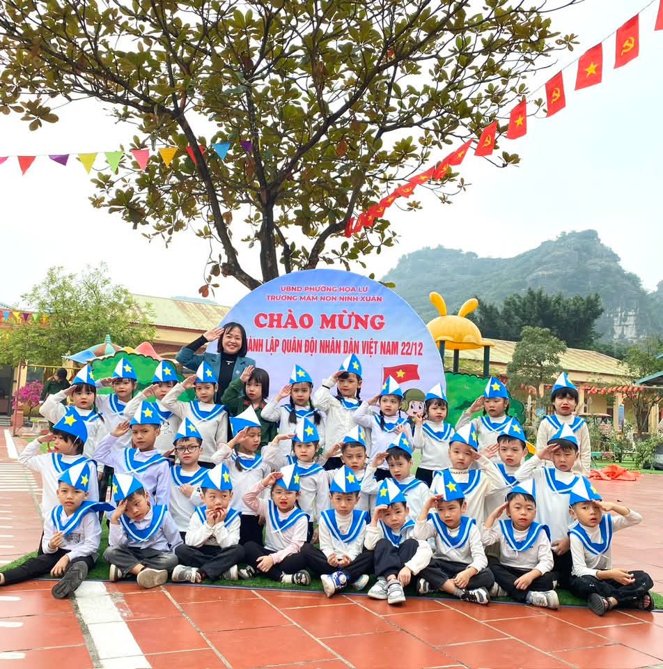 💐Hòa chung không khí kỷ niệm 81 năm ngày thành lập Quân đội Nhân dân Việt Nam 22/12, Trường Mầm non Ninh Xuân đã tổ chức chương trình trải nghiệm ý nghĩa 💕“Bé tập làm chiến sĩ”💕. 🌼Các bé được hóa thân thành những chú bộ đội nhỏ, tìm hiểu công việc của người lính được trải nghiệm bữa cơm hành quân giản dị mà ấm áp. Từng nắm cơm nhỏ mang đến cho các con sự thích thú, giúp trẻ hiểu hơn về cuộc sống, sinh hoạt của các chú bộ đội❤️