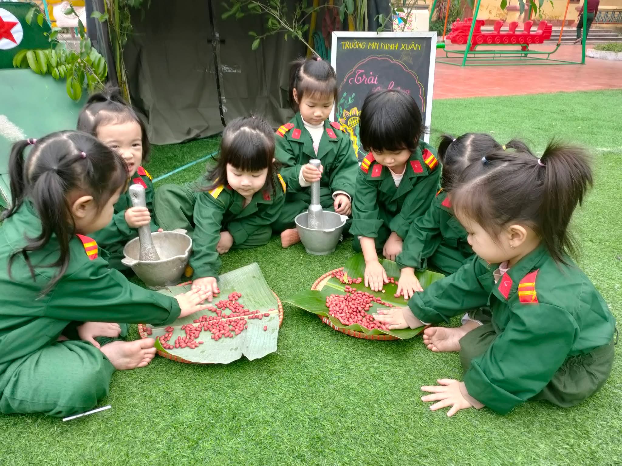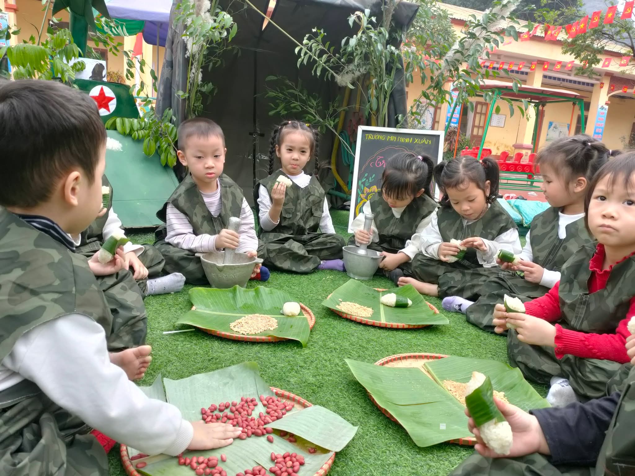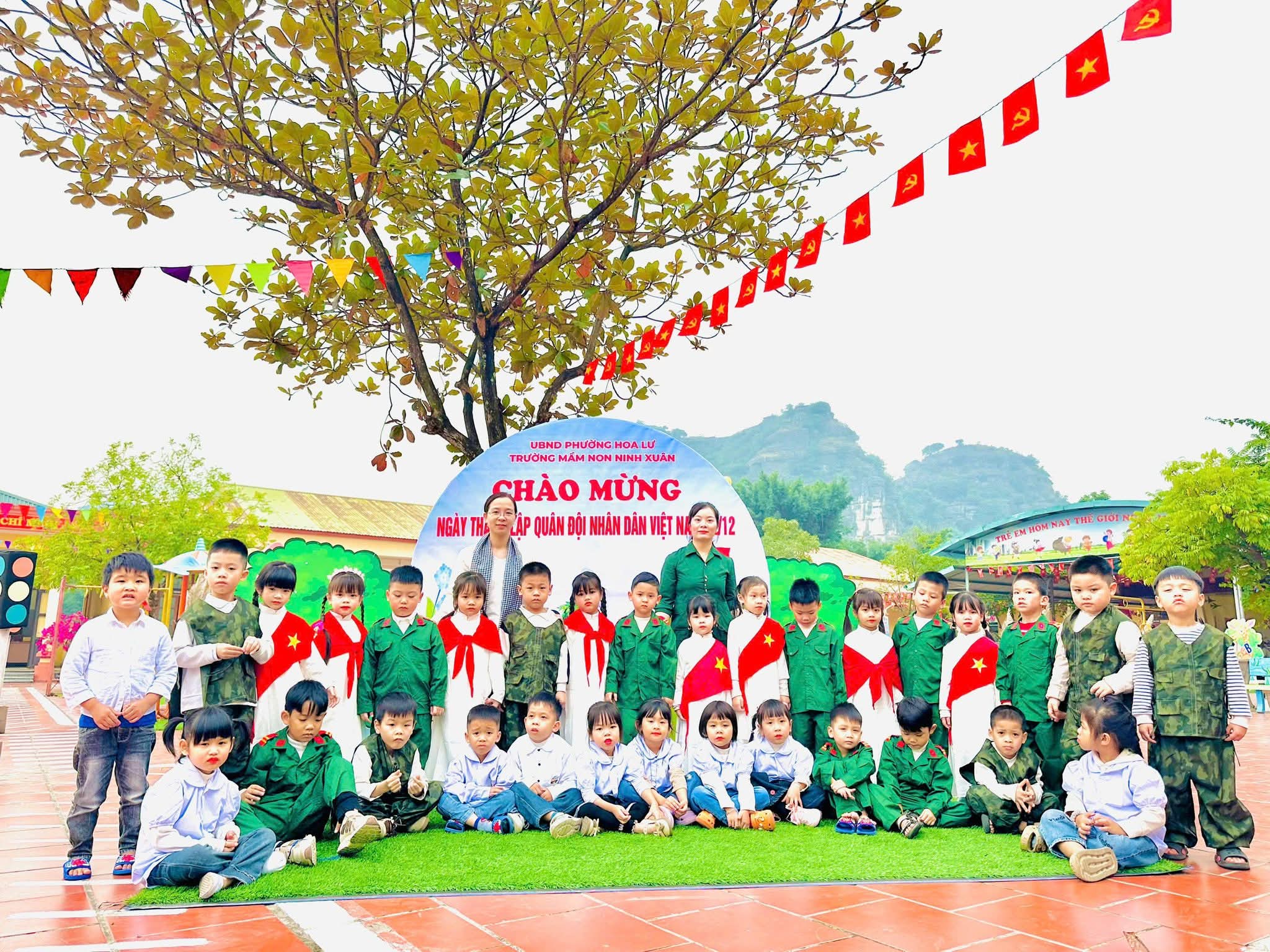 💐Hòa chung không khí kỷ niệm 81 năm ngày thành lập Quân đội Nhân dân Việt Nam 22/12, Trường Mầm non Ninh Xuân đã tổ chức chương trình trải nghiệm ý nghĩa 💕“Bé tập làm chiến sĩ”💕. 🌼Các bé được hóa thân thành những chú bộ đội nhỏ, tìm hiểu công việc của người lính được trải nghiệm bữa cơm hành quân giản dị mà ấm áp. Từng nắm cơm nhỏ mang đến cho các con sự thích thú, giúp trẻ hiểu hơn về cuộc sống, sinh hoạt của các chú bộ đội❤️