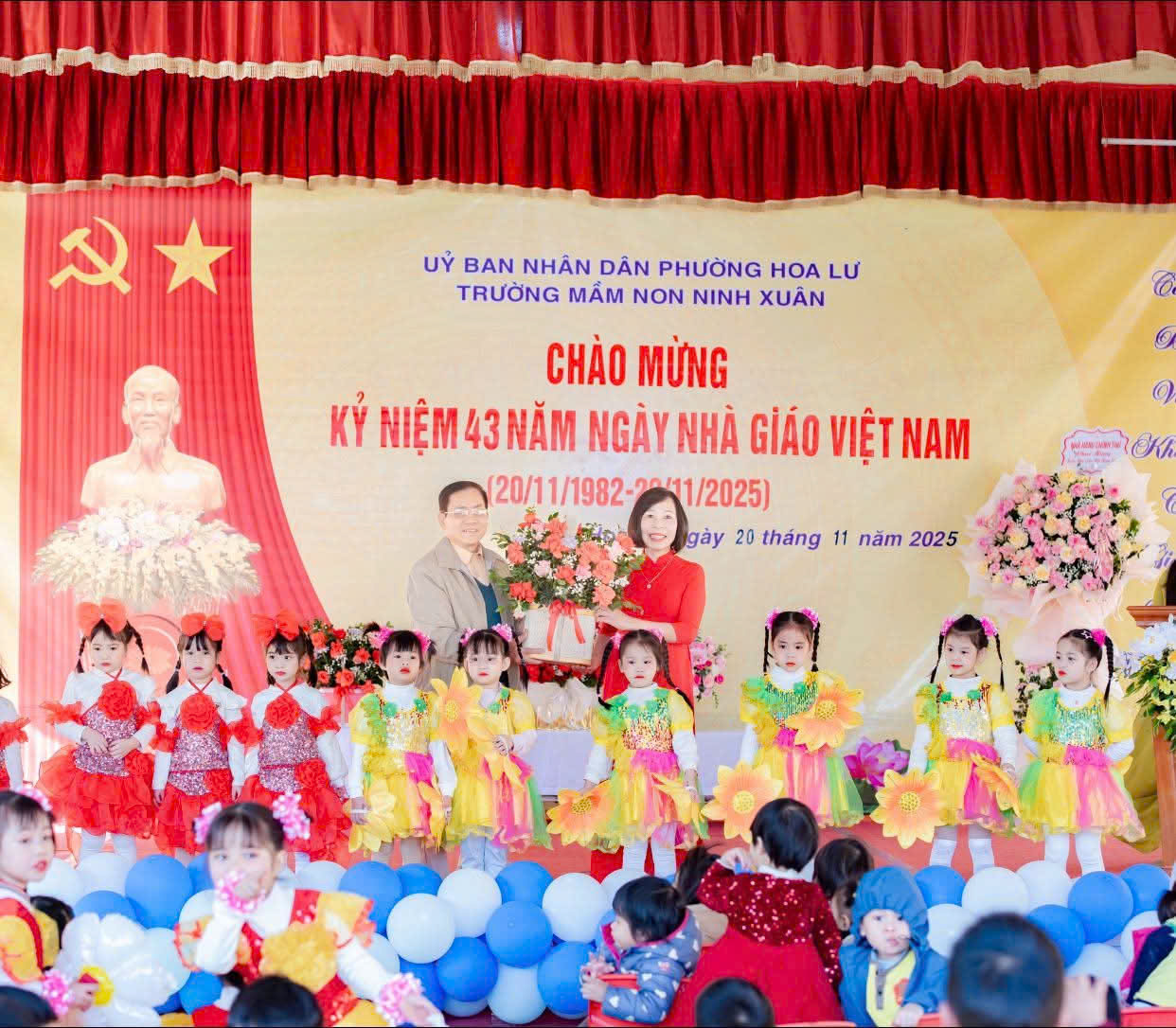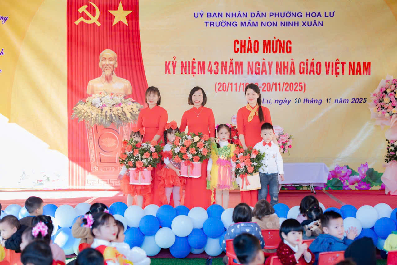 Nhân dịp kỉ niệm 43 năm Nhà giáo Việt Nam (20/11/1982 – 20/11/2025). Xin gửi lời tri ân sâu sắc tới những người đã lái đò thầm lặng đã dành trọn trái tim, sự kiên nhẫn và tình yêu thương cho hành trình nuôi dưỡng, chăm sóc và giáo dục trẻ thơ. Mỗi nụ cười, mỗi bước trưởng thành của các con đều mang dấu ấn của sự tận tụy và tâm huyết từ các cô giáo. Xin kính chúc quý thầy cô luôn mạnh khỏe, hạnh phúc và tiếp tục giữ vững ngọn lửa đam mê để cùng nhau xây dựng một môi trường giáo dục Mầm non Ninh Xuân ngày càng giàu yêu thương, sáng tạo và chất lượng.”❤️❤️❤️💐💐💐